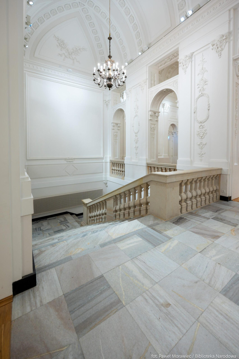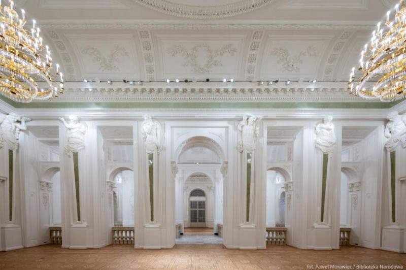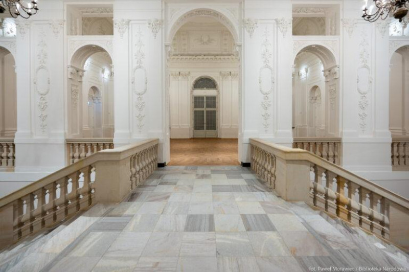 Palača Republike, koja je izvorno pripadala obitelji Krasiński, stoljećima je bila prestižna rezidencija i jedan od najvažnijih simbola moći Republike. Njeni interijeri bili su ukrašeni umjetničkim djelima koja danas čine dio nacionalne baštine. Danas je palača važno kulturno središte u kojem se čuvaju najvrednije zbirke Nacionalne knjižnice. Palača također služi kao prostor za izložbe i obrazovne događaje koji približavaju poljsko književno naslijeđe. Zahvaljujući modernizaciji, objekt sada kombinira povijesnu vrijednost s modernim tehnologijama, omogućujući interaktivno prikazivanje zbirki — što je neprocjenjiv alat za očuvanje i promicanje nacionalne kulture. Objekt je također prilagođen potrebama osoba s invaliditetom: postavljeni su dizala, rampe i automatska vrata, osiguravajući praktičan pristup svim posjetiteljima. Osim toga, renovacijom je vraćen sjaj povijesnoj fasadi, kao i obnovljeni štukature i arhitektonske detalje, naglašavajući povijesni karakter zgrade.